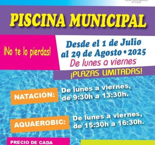 El Ayuntamiento de Dalías informa a vecinos del municipio que ya está abierto el plazo de inscripción para los Cursos de Verano 2025 en la Piscina Municipal, que se desarrollarán del 1 de julio al 29 de agosto. Una edición que vuelve para continuar fomentando la actividad física y el ocio durante los meses estivales para todos los públicos a partir de los 3 años.