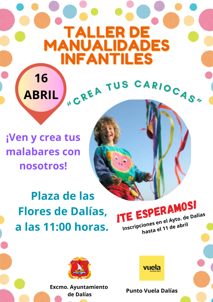 El Ayuntamiento de Dalías, con el apoyo de Punto Vuela Dalías, ha organizado dos actividades infantiles gratuitas que se desarrollarán durante la próxima Semana Santa. Ambas propuestas están dirigidas al público infantil y juvenil y tendrán lugar en la Plaza de las Flores de Dalías los días 15 y 16 de abril, a partir de las 11:00 horas.