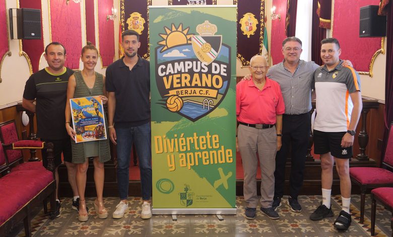 El alcalde de Berja, José Carlos Lupión, junto al concejal de Deportes, Matías Sánchez, y directivos del Berja CF, han presentado esta edición del Campus de Fútbol que cuenta con la colaboración del Ayuntamiento de Berja a través del área de Deportes.