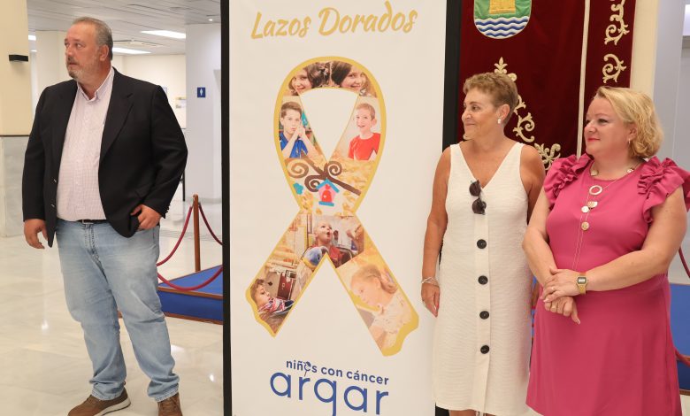 El Patio de Luces del Ayuntamiento de El Ejido acoge desde hoy, y lo hará durante todo el mes de septiembre, un lazo dorado para simbolizar el apoyo municipal a los niños y familias que han de luchar contra el cáncer infantil. Los ediles María del Mar Martínez y José Francisco Rivera han acompañado a la presidenta de la asociación ARGAR de padres con niños con cáncer de Almería, Rosa María Onieva; y a su vicepresidenta, Elisa García, en la instalación de este símbolo, con el que se persigue visibilizar esta causa.