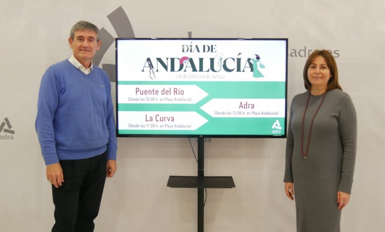 El Ayuntamiento de Adra ha organizado, como cada año, una completa programación, que se desarrollará a lo largo del próximo martes, 28 de febrero, para celebrar el Día de Andalucía. Una jornada que comenzará en la barriada de Puente del Río, a partir de las 10:00 horas; continuará en el núcleo urbano, a partir de las 12:00 horas; y finalizará en la barriada de La Curva, de 17:00 horas en adelante, y que estará “repleta de baile, animación y convivencia”, como ha explicado el alcalde, Manuel Cortés, acompañado de la concejala de Presidencia, María Paz Fernández.