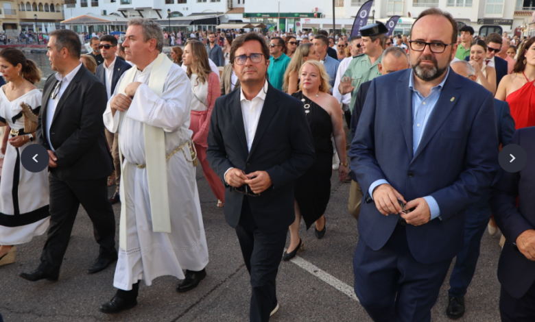 Con la presencia del alcalde, Francisco Góngora, tras la eucaristía, la Patrona del Mar ha procesionado portada a hombros en un recorrido que ha finalizado con el embarque de la imagen por los marineros del puerto, para que cientos de devotos y visitantes pudiesen verla tanto desde el propio puerto como subidos a bordo de las embarcaciones de recreo, barcos y veleros que han ido paseando tras la Virgen hasta llegar de nuevo a la Torre.