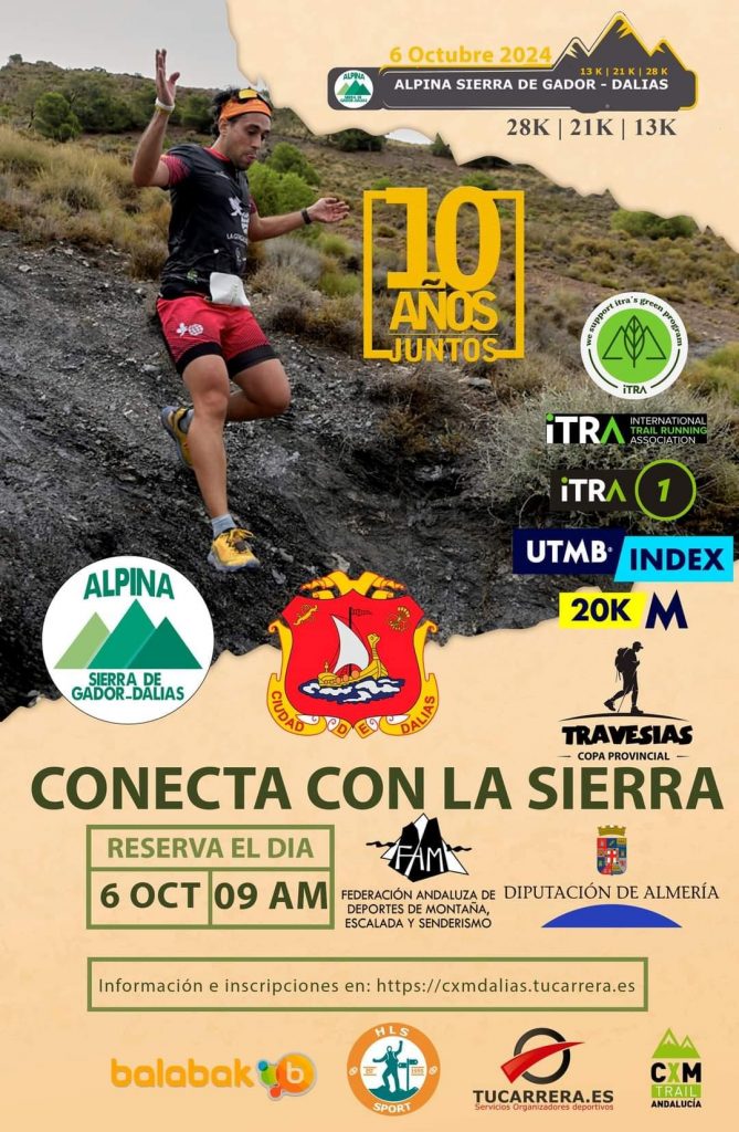 Dalías se prepara para acoger el próximo domingo, 6 de octubre, una de las pruebas deportivas más destacadas del calendario regional, enmarcada en las Jornadas de Divulgación de Montaña y Juventud. Este año, “la competición tiene un sabor especial, ya que se celebra el 10º aniversario de la Carrera Alpina Sierra de Gádor, un evento que ha ganado relevancia y prestigio entre la agenda internacional del trail running”, señala el alcalde de Dalías, Francisco Lirola, “incluida en el calendario de competiciones de la Federación de Deportes de Montaña de Andalucía (FAM) y la Asociación Internacional Trail Running (ITRA), con la colaboración de Diputación de Almería”