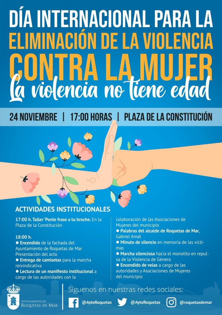 Bajo el lema “La violencia no tiene edad “, el Ayuntamiento de Roquetas de Mar, a través del área de la Mujer, ha organizado un amplio programa de actividades con motivo del Día Internacional para la Eliminación de la Violencia contra la Mujer que se conmemora el próximo sábado 25 de noviembre.