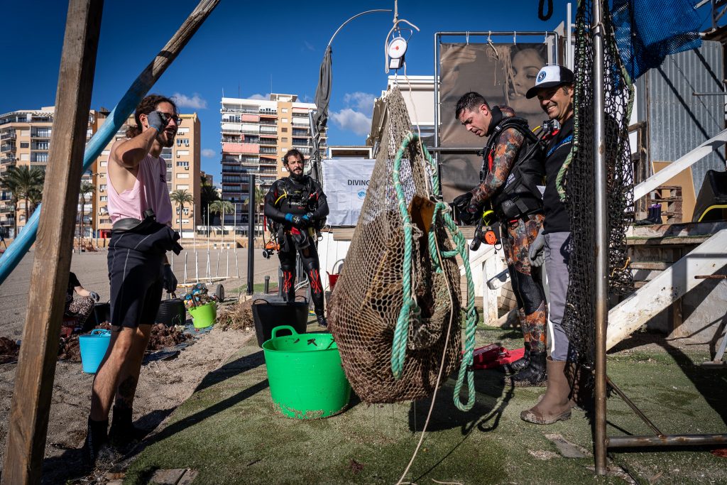 Un grupo formado por 12 buceadores y voluntarios se ha sumado a una nueva edición de limpieza de fondos marinos en la playa próxima al Puerto Deportivo de Aguadulce.