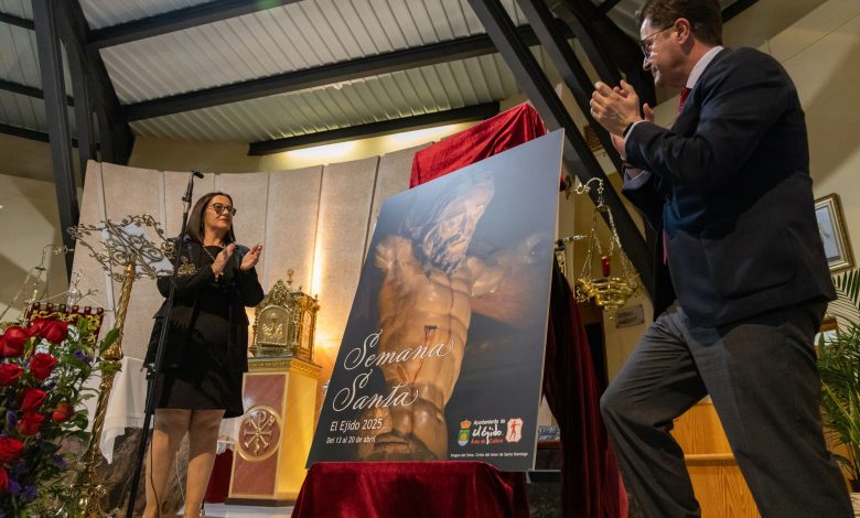 La Iglesia de Santo Domingo de Guzmán del barrio de Santo Domingo ha acogido hoy la presentación del cartel de la Semana Santa de El Ejido 2025, que luce una imponente imagen de primer plano del Santísimo Cristo del Amor.