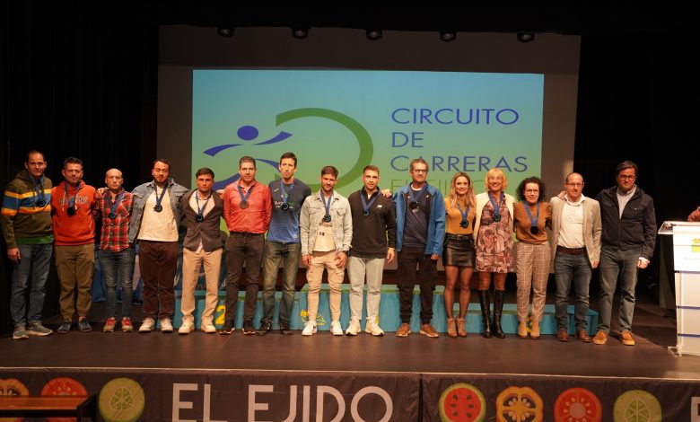 La sala B del Teatro Auditorio ha acogido la gala de clausura donde se ha hecho entrega de los trofeos a los ganadores en las distintas categorías El alcalde de El Ejido ha agradecido a los patrocinadores su “firme y continua apuesta por el deporte ejidense, que contribuye a incrementar la capacidad del deporte municipal para llegar cada vez a más gente” Góngora ha destacado el trabajo que realizan los clubes y entidades organizadoras“ porque habéis ido abriendo camino y siendo locomotora en un deporte que es esencial como es el atletismo, que en El Ejido brilla con luz propia ”El primer edil ha destacado el papel fundamental del deporte “por su contribución al bienestar físico y a generar hábitos de vida saludable” Durante la Gala se ha presentado el X Circuito de Carreras Populares del IMD que pasará de seis a siete pruebas con la incorporación del I Cross Cañada de Ugíjar, Ciudad de El Ejido