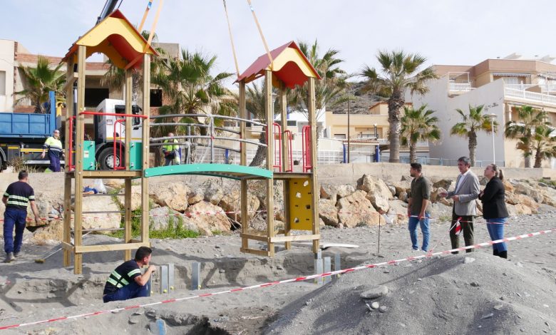 Las playas de Guainos y de El Lance de Adra contarán en los próximos días con nuevos elementos de juego infantiles. El Ayuntamiento está renovando estos dos espacios lúdicos a pie de mar en barriadas que multiplican su población en la época estival que ofrecerán nuevos elementos de calidad, fabricados en material de alta durabilidad y calidad, adaptados a los condicionantes climáticos de la zona gracias una inversión superior a los 18.000 euros. El alcalde de Adra, Manuel Cortés, acompañado de los concejales de Parques y Hacienda, Antonio Sánchez y Alicia Heras, ha visitado los trabajos de instalación de estos elementos.