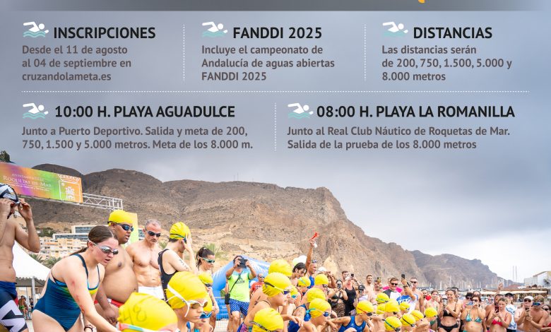 La prueba, abierta a nadadores federados y no federados, reunirá a participantes de todas las edades y contará con cinco distancias —200, 750, 1.500, 5.000 y 8.000 metros— además de la modalidad de 400 metros correspondiente al Campeonato de Andalucía de Aguas Abiertas FANDDI, así como distancias adaptadas para nadadores con discapacidad intelectual incluidas en la programación oficial.