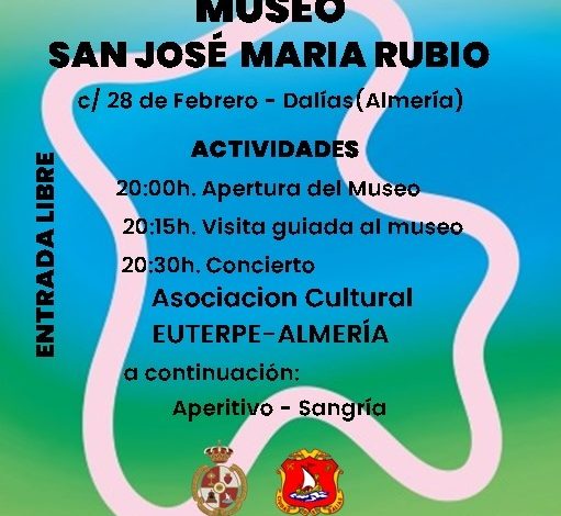 La velada comenzará con visitas guiadas al museo, en las que los asistentes podrán conocer más a fondo la vida y obra de San José María Rubio. A través de objetos, documentos y testimonios, se mostrará la huella que dejó este ilustre hijo de Dalías, canonizado en 2003 y considerado uno de los grandes exponentes de la espiritualidad jesuita en España.
