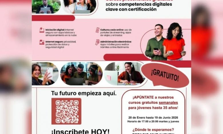 El programa ‘Yoconecto.org’, dirigido a ofrecer formación gratuita en competencias digitales a jóvenes de 18 a 35 años, ha llegado al Espacio Murgijoven. Esta iniciativa de Generación D, impulsada por Red.es y el Ministerio para la Transformación Digital y de la Función Pública, está financiada por el Plan de Recuperación, Transformación y Resiliencia a través de los fondos Next Generation de la Unión Europea y cuenta en el municipio con la colaboración del área de Juventud del Ayuntamiento de El Ejido.
